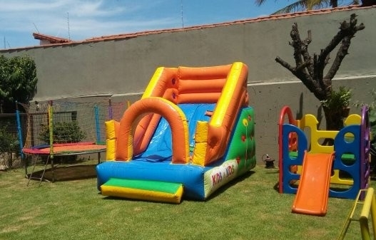 Escorregador Inflável de médio porte ideal pra espaços menores.Capacidade máxima 03 crianças entre 05 a 07 anos de idade. Tamanho: 3,30 mtsx 2,30 mts por 2,40 altura.